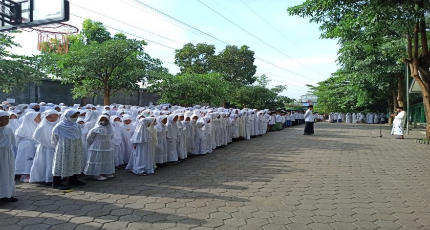 Kab. Kediri ( Min 2) MIN 2 Kediri, hari ini Senin (17/7) mengadakan acara pengukuhan kader dan duta moderasi beragama di hari pertama masuk sekolah. Tema kegiatan adalah Membentuk Gener